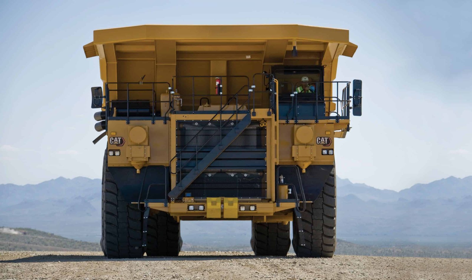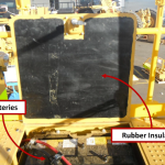 The batteries are located under a steel floor panel on the machine’s platform.